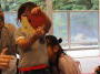 ⑥表面に霧吹きしてから180℃に予熱したオーブンに入れ、1分後に取り出して再度泡切りをしてからオーブンに戻す。