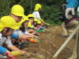 ⑤ 型に流し入れ、竹串などを使って縦横切るように泡切り(※)を数回繰り返す。