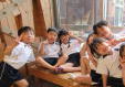 ⑤ 型に流し入れ、竹串などを使って縦横切るように泡切り(※)を数回繰り返す。